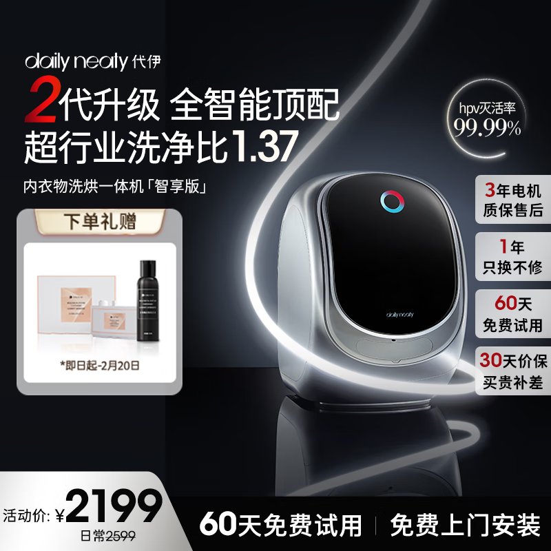 daily neaty内衣洗衣机 洗烘一体 内裤洗衣机 内衣裤洗衣机 洗内裤机 内裤自动投液 智能app小型全自动2代升级价格:2199.00元!