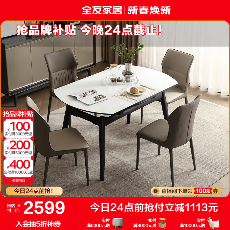 全友家居多功能可伸缩餐桌客厅吃饭桌子家用餐桌椅组合一桌四椅DW1221价格:3712.86元!
