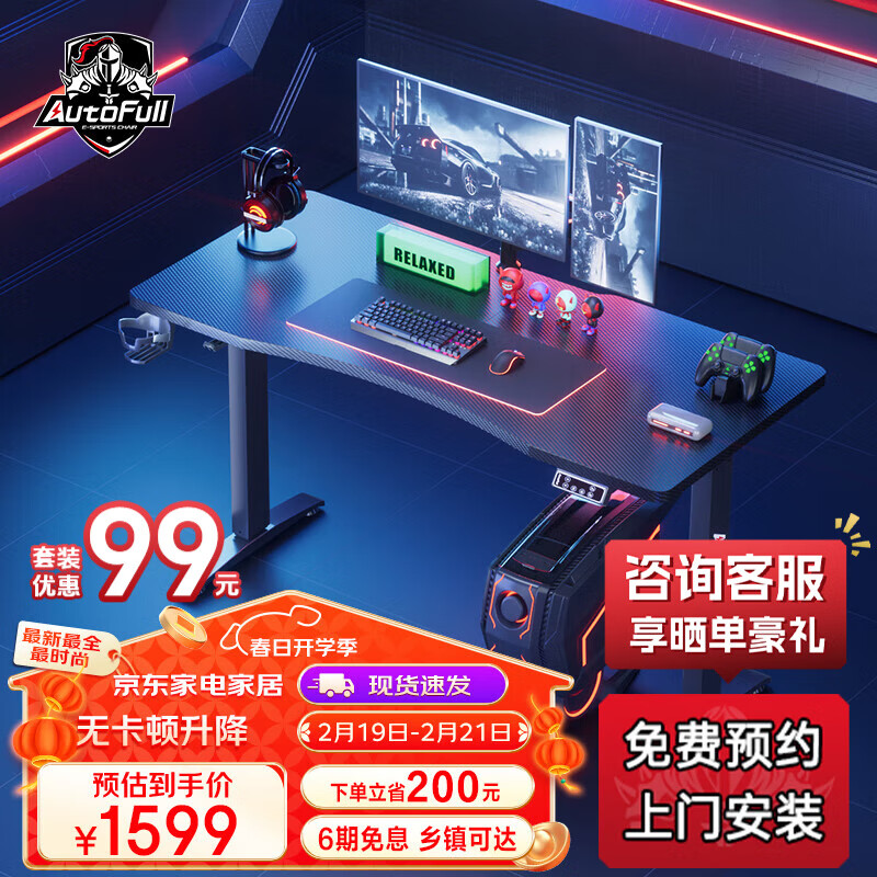 傲风A4自由装甲电竞桌电动升降桌电脑桌台式书桌办公桌子1.6m价格:1799.00元!