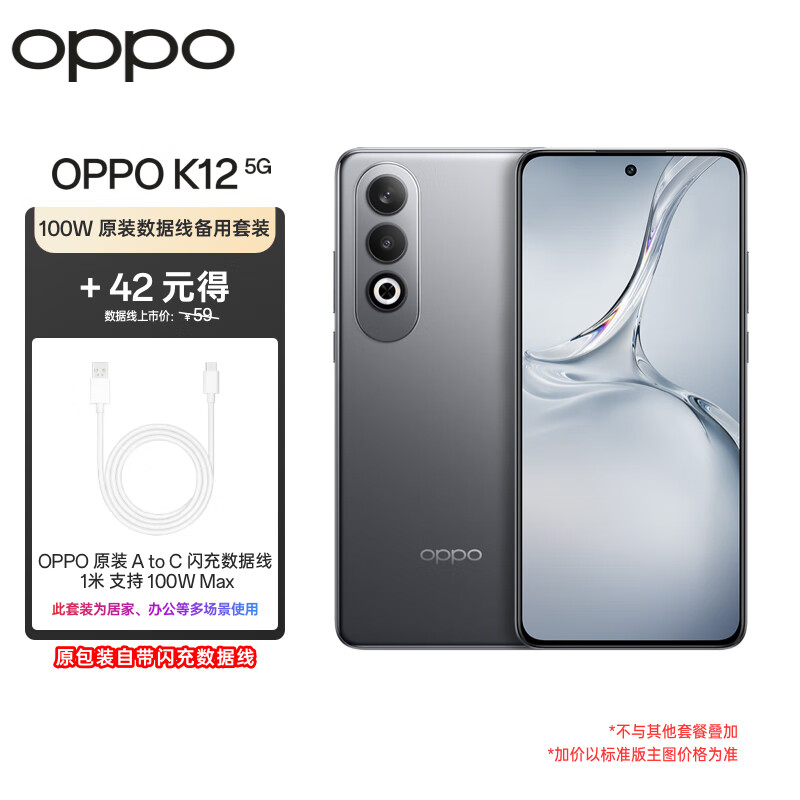 OPPO K12 5G 100W闪充 5500mAh超长续航 拍照游戏 AI手机 12GB+256GB 星夜【100W原装数据线备用套装】价格:1741.00元!