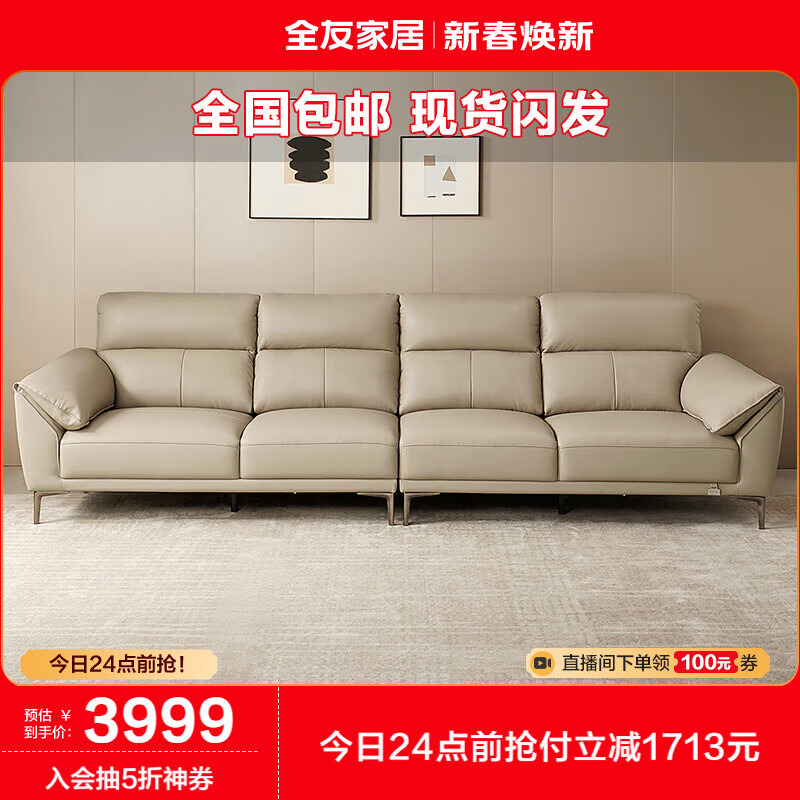 全友家居 现代简约头层牛皮直排大象耳朵大户型真皮艺沙发客厅112021价格:5712.86元!