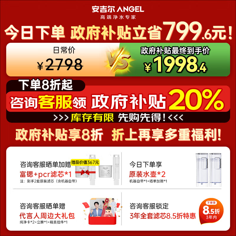 安吉尔T3Pro家用台式即热制冷直饮RO反渗透免安装饮水净水器矿化净饮机一体JY3579-ROT12HD家电补贴价格:2498.00元!
