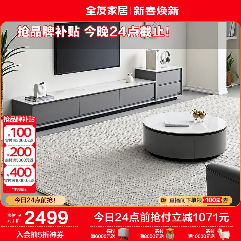 全友家居现代简约岩板圆茶几电视柜组合家用客厅电视柜落地储物DW1055价格:3570.00元!
