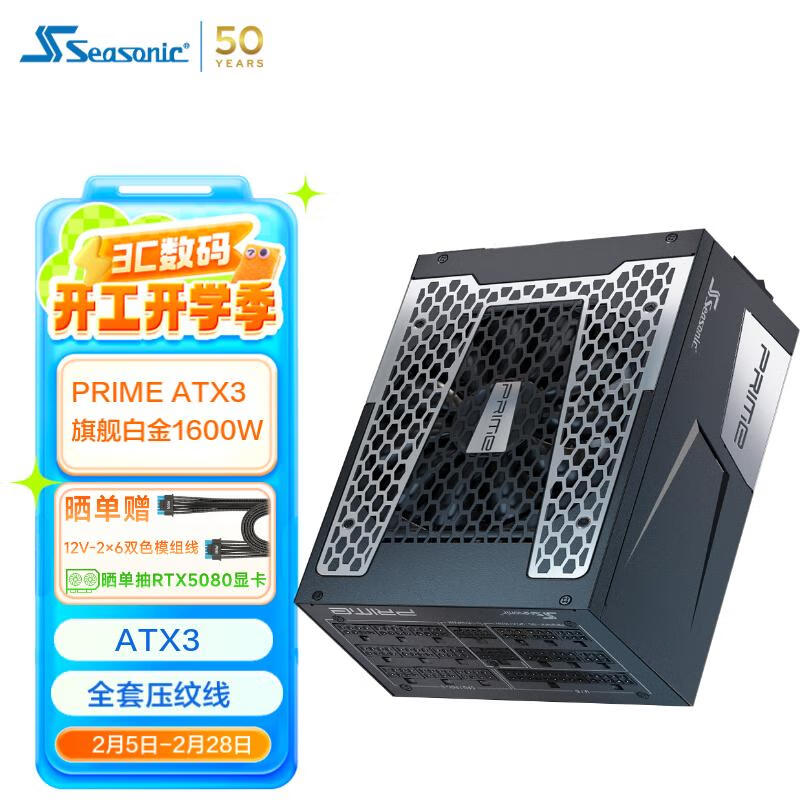SEASONIC海韵1600W PRIME旗舰白金ATX3电源 支持5090价格:3399.00元!