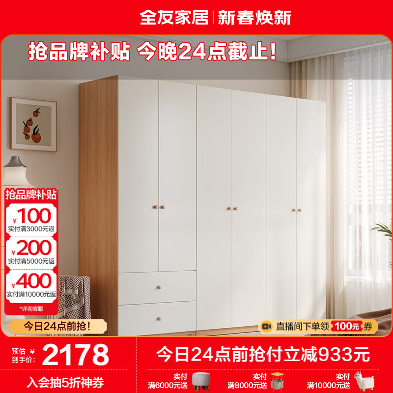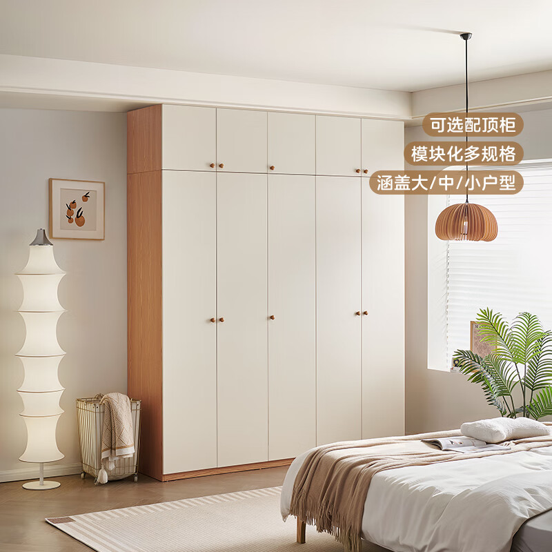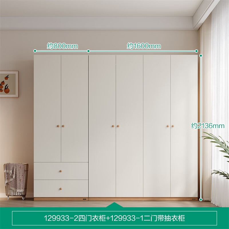 全友家居 简约奶油风衣柜组合卧室家用靠墙落地柜子成品衣橱129933价格:3111.43元!