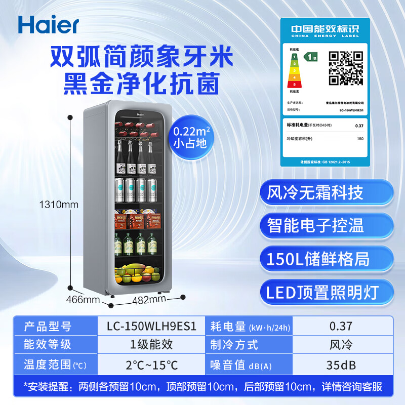 海尔(Haier)150升一级能效家用客厅办公室冷藏柜暖藏冰吧能量吧茶叶饮料水果蔬菜保鲜柜LC-150WLH9ES1补贴价格:2599.00元!