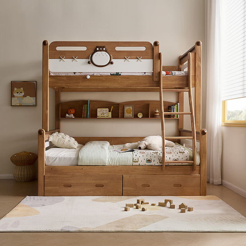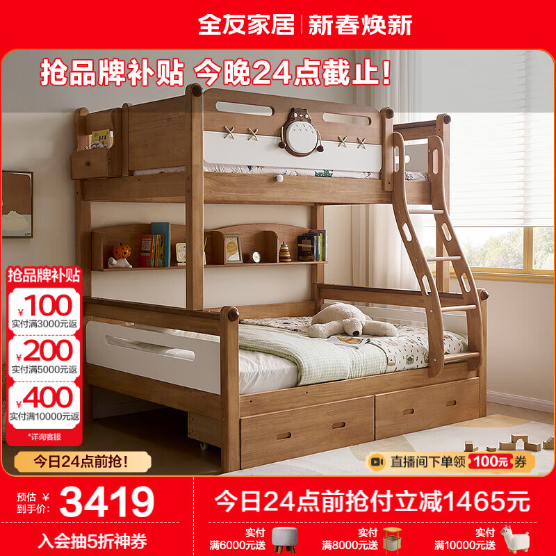 全友家居 实木高低学生储物床青少年原木风上下铺床家具1.35米DW7028价格:4884.29元!