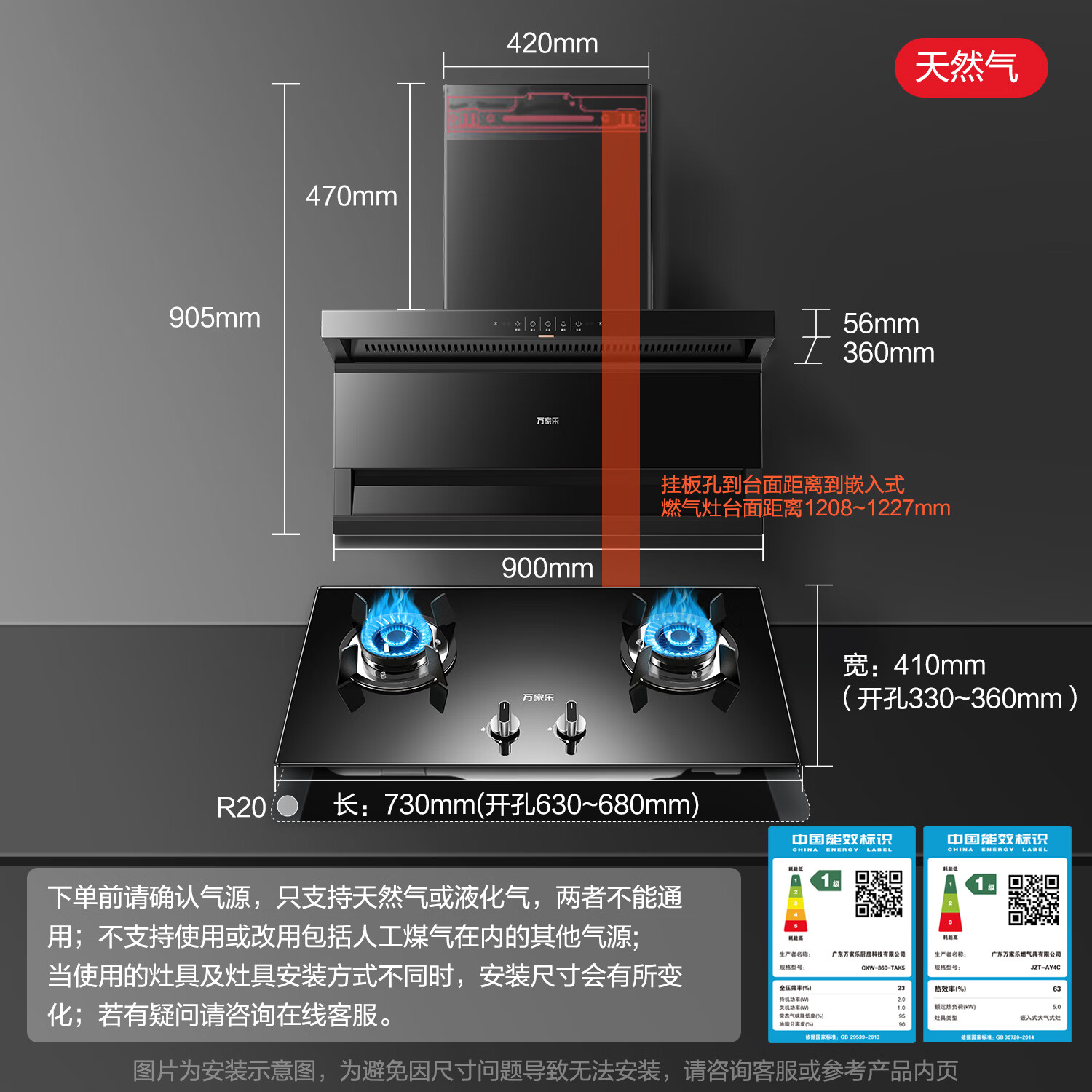 万家乐顶侧双吸油烟机 24立方抽油烟机烟灶套装自清洗换新免扩孔小尺寸钢化玻璃灶具套装TAK5+AY4C天然气价格:1999.00元!