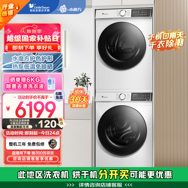 小天鹅(LittleSwan)水魔方洗烘套装 10KG滚筒洗衣机全自动+热泵烘干机 除菌螨 TG100V186W+135W以旧换新 家电补贴价格:6199.00元!