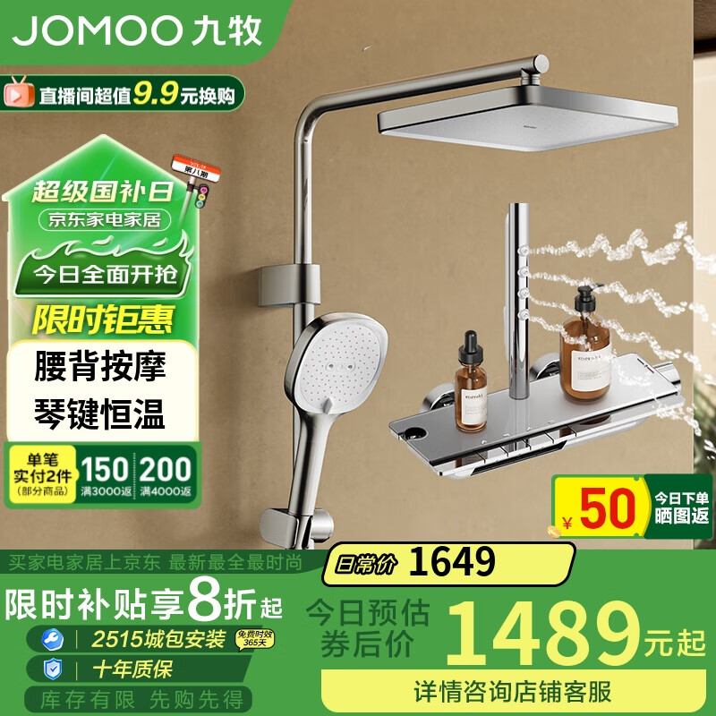 九牧(JOMOO)花洒淋浴套装钢琴键置物除垢喷枪恒温SPA淋浴器26192-695/1B-1价格:1649.00元!