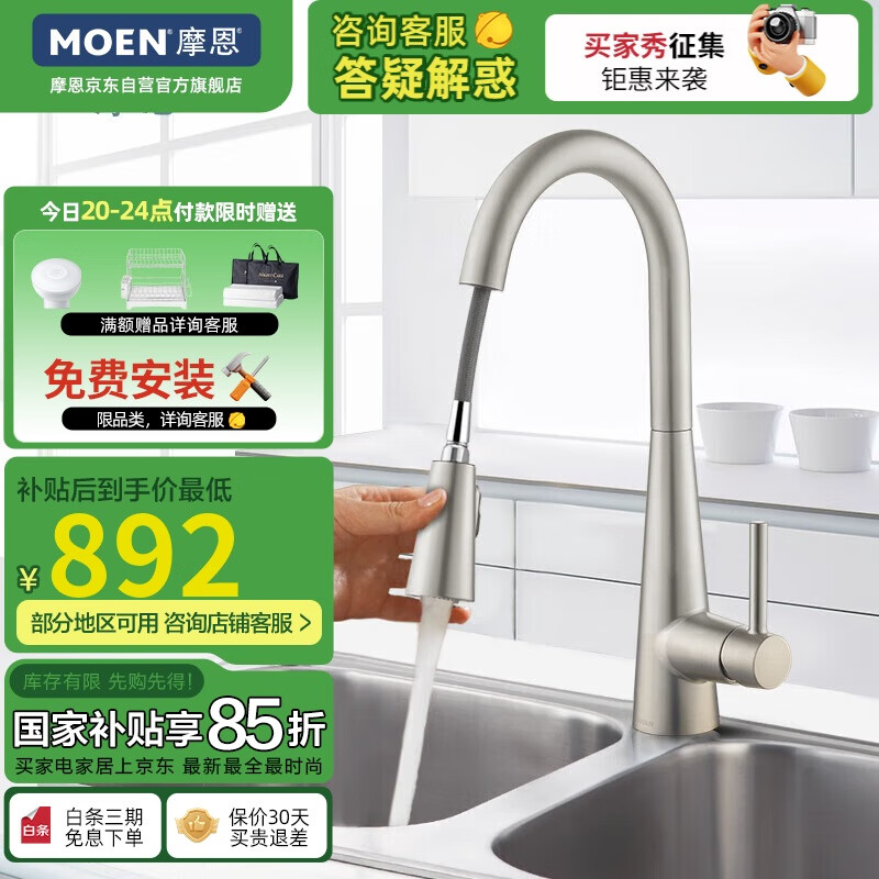 摩恩(MOEN)防指纹拉丝厨房龙头 抽拉式水槽洗菜盆洗碗盆冷热水龙头 59铜龙头价格:1049.00元!