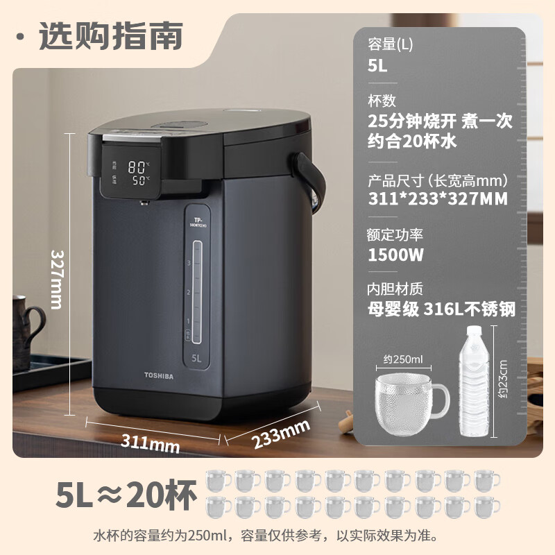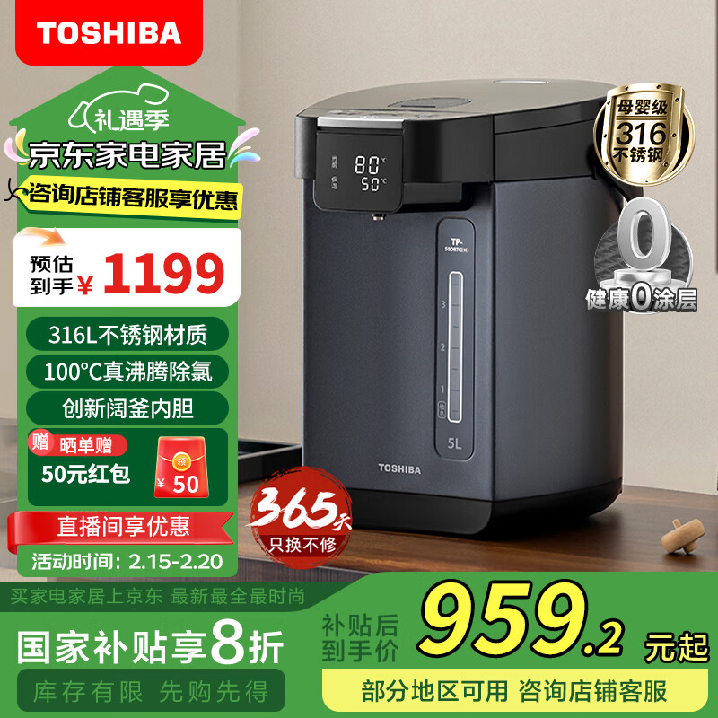 东芝(TOSHIBA)【补贴】10重保护316L母婴级不锈钢电热水瓶5升电热水壶 恒温除氯 光感节能 TP-50DRTC(H)价格:1199.00元!