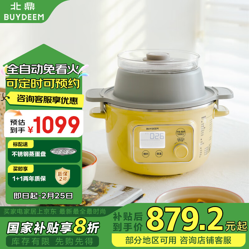 北鼎(Buydeem)家用迷你电煮锅电火锅多功能全自动预约多用途锅 【小鹅黄G37 含炖盅+陶瓷蒸蛋盘】价格:1099.00元!