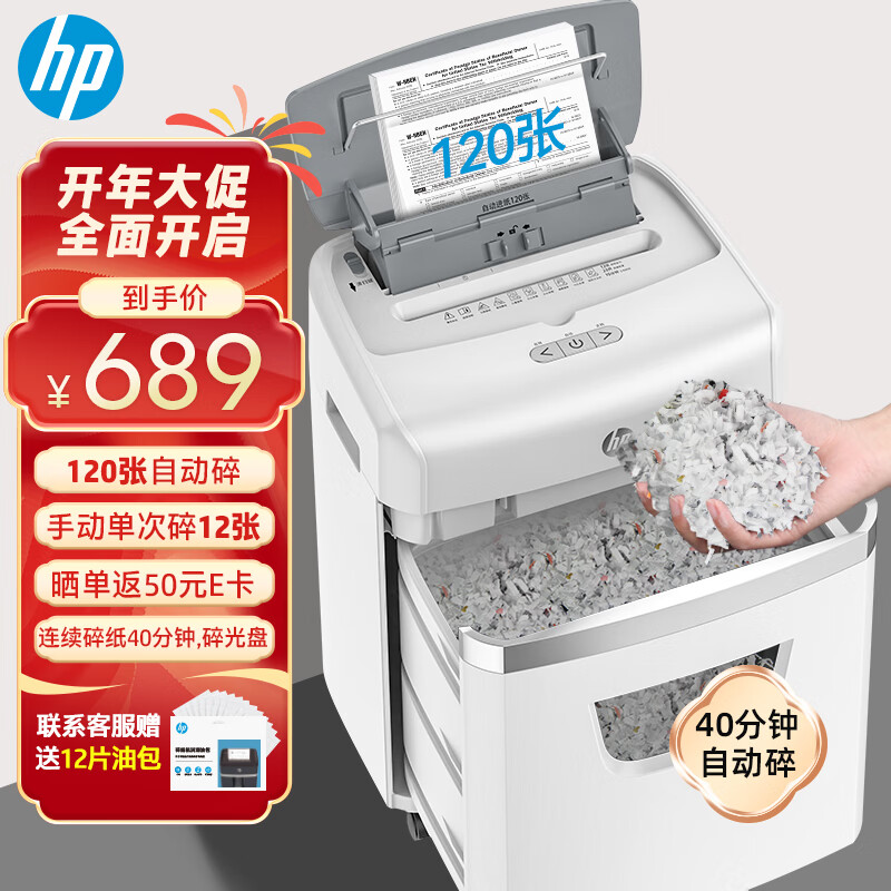 HP惠普 全自动120张碎纸机 高保密办公大型商用粉碎机 (自动碎持续40分钟) 手动单次12张 W23120CC价格:809.00元!