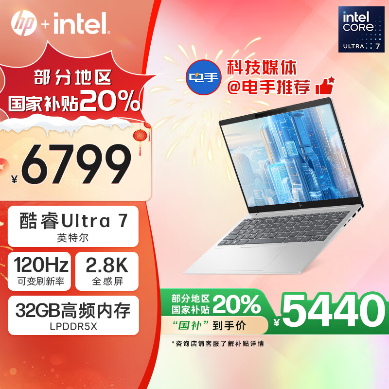 惠普HP【补贴20%】星Book Pro 14 2024 轻薄笔记本电脑(酷睿Ultra7 32G 1T 2.8K 120Hz OLED AI)银价格:6799.00元!