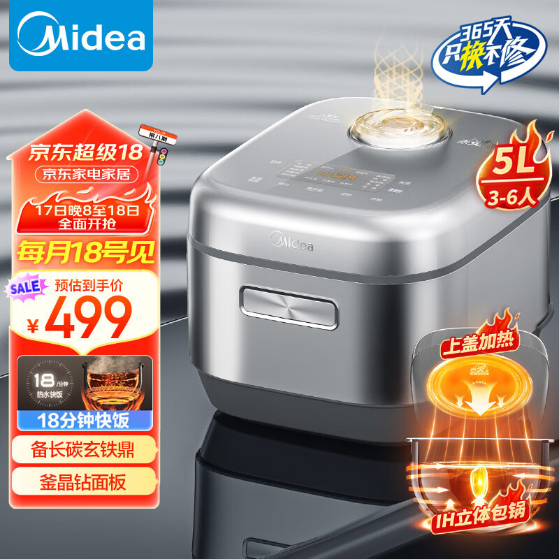 美的(Midea)电饭煲5L电饭锅IH电磁加热双热源玄铁鼎釜内胆18分钟飞快煮家用智能电饭煲MB-HC557补贴价格:499.00元!