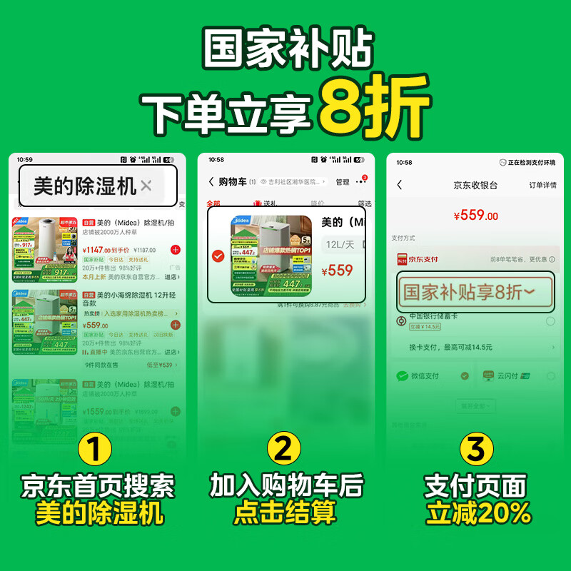 5、天气潮湿,准备买一个抽湿机。之前家里的电器基本上是美的品牌,这款外观好看,做工可以,外型小巧,并且产品也是新上市产品,声音小,很适合自己要求