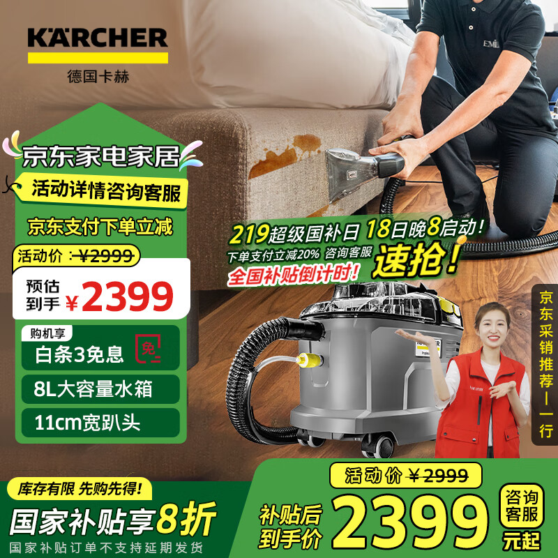 KARCHER德国卡赫 补贴布艺沙发清洗机大吸力地毯清洁机窗帘汽车座椅清洗商用 原装进口puzzi8/1价格:2999.00元!