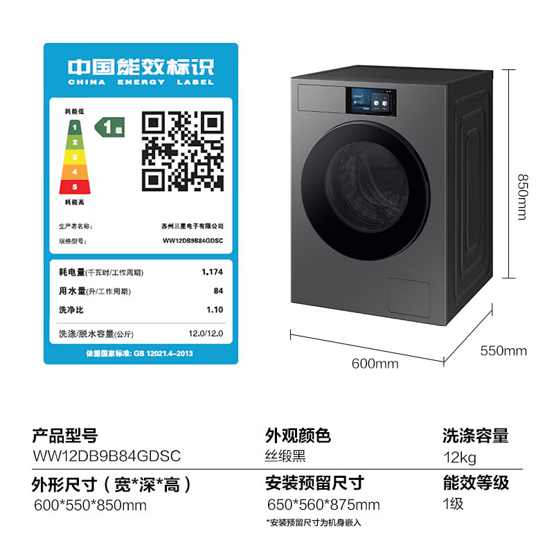 我今天要给大家带来的是三星WW12DB9B84GDSC满意的,价格也很合理的。非常满意的一次购物体验,品牌值得信赖,质量有保障。操作简单,多种程序可供选择,洗涤效果好,噪音小,智能控制。会向其他人推荐回购的!