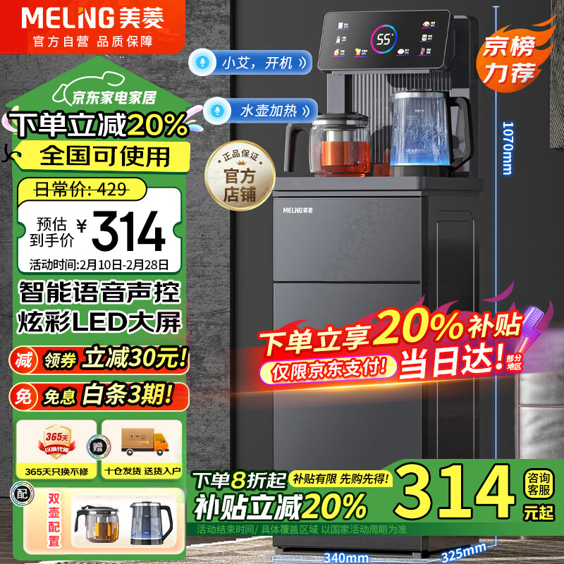 美菱(MeiLing)茶吧机家用高端智能语音遥控立式饮水机下置水桶一体柜家用办公全自动机温热款MY-C912(语音款)价格:459.00元!