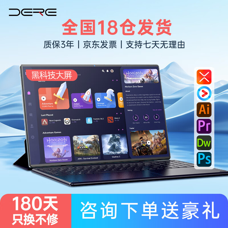 戴睿(dere)国补3c黑科技16英寸全能本平板二合一笔记本电脑自营 学生网课游戏商务办公设计触控本 16G/512G价格:2715.00元!
