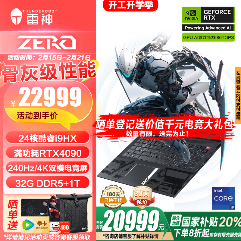 雷神Zero【政府补贴20%】16英寸游戏本笔记本电脑(i9-14900HX 4090 32G+1T 240Hz/4K)支持DeepSeek价格:22999.00元!