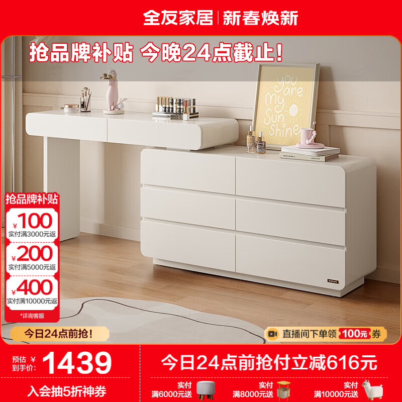 全友家居 梳妆台现代简约可伸缩转角智能触屏妆镜卧室化妆桌129553价格:2055.71元!