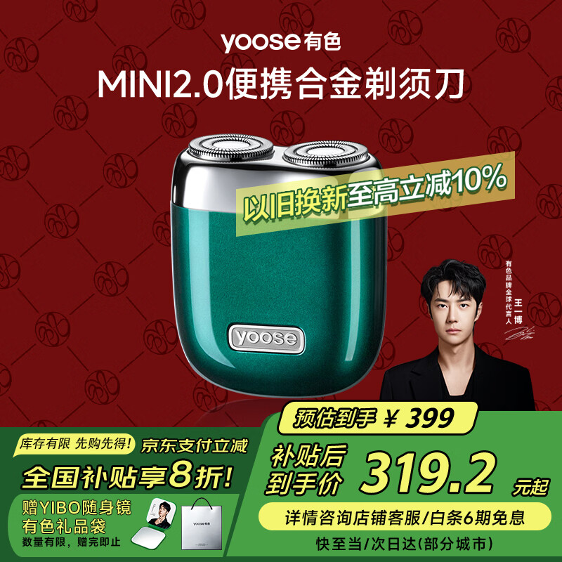 有色(yoose)【王一博推荐】剃须刀便携款合金电动刮胡刀男士 新年情人节礼物送男友胡须刀礼盒 MINI2.0 英伦绿价格:399.00元!