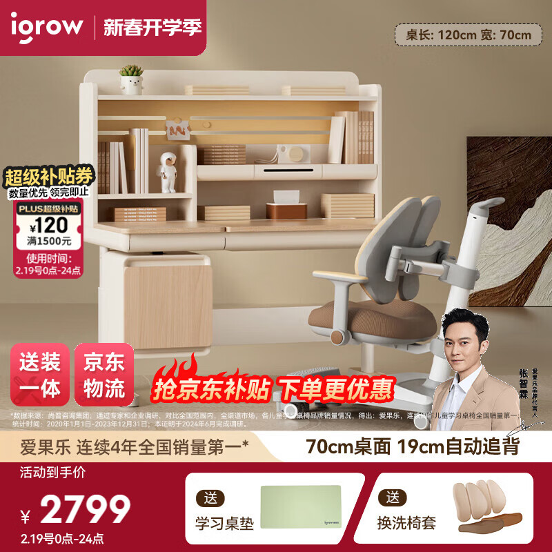 爱果乐(IGROW)咖啡猫儿童学习桌书桌椅套装写字桌升降桌中小学生家用课桌1.2m价格:3799.00元!