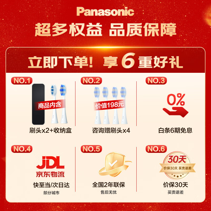 松下(Panasonic)电动牙刷进口双马达横纵震颤悬浮充电高效清洁护龈成人情侣款情人节礼物送男友女友PDP67银价格:1199.00元!