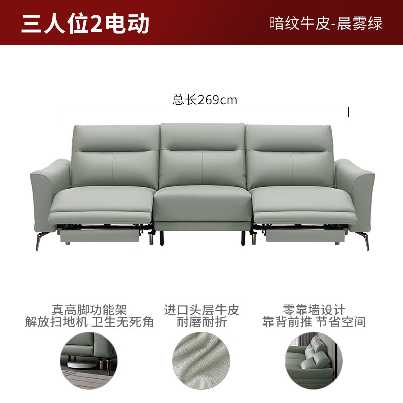 顾家家居简约零靠墙头层牛皮高脚电动功能沙发客厅6055E【绿】3人位2电动价格:6299.00元!