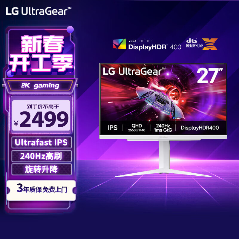 LG 27GR83Q白色 27英寸 240Hz UltraFast IPS 1ms HDMI2.1 HDR400 旋转升降 高刷游戏电竞显示器价格:2499.00元!