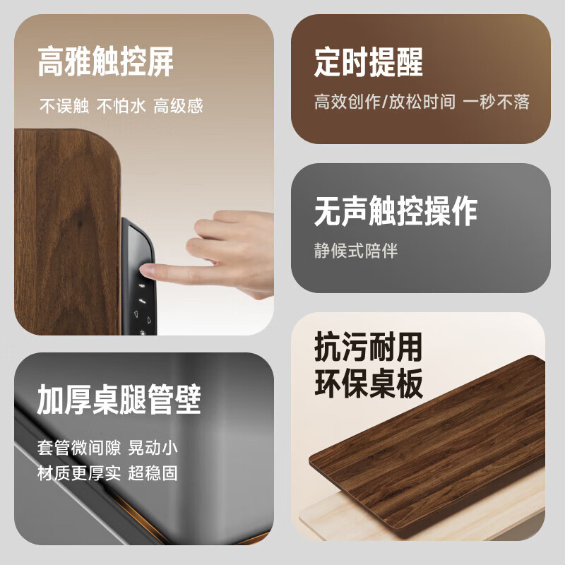 2、面板光滑插电后触控上下也很丝滑用这个电动升降桌很方便可以随意按需求控制站立办公的需求也能解决。赞?