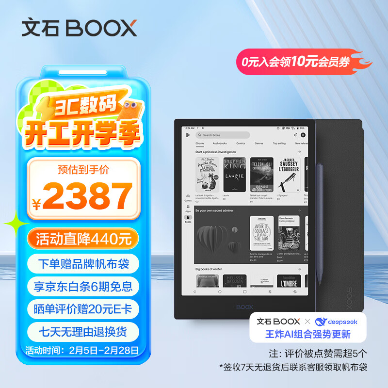 BOOX文石 NoteX3 Plus 10.3英寸电子书阅读器平板 墨水屏电纸书电子纸 标配+原装保护套套装价格:2387.00元!