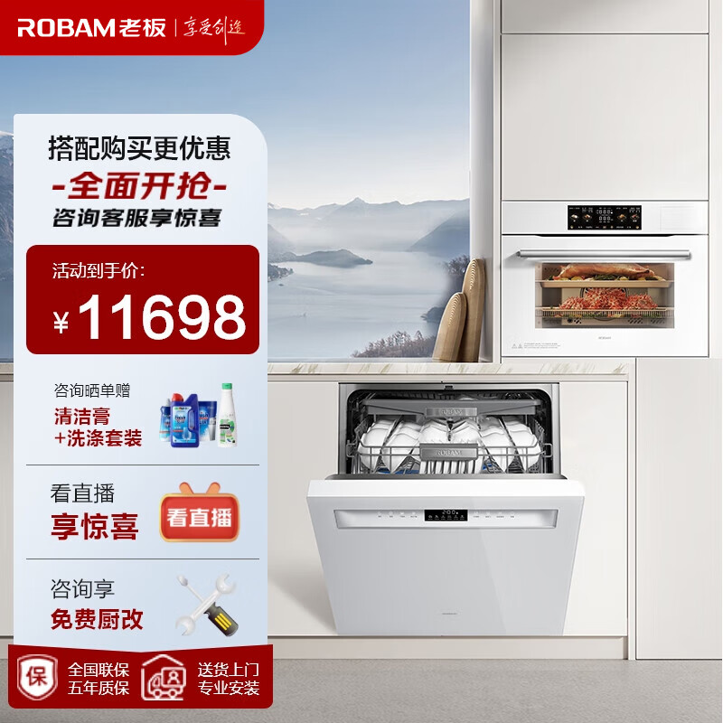 老板(Robam)盐系G1海盐白洗碗机蒸烤套系自动开关门免费橱改55L搪瓷EXP专业控温价格:11698.00元!