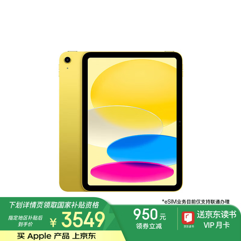 Apple/苹果 iPad(第 10 代)10.9英寸平板 2023年(256GB eSIM版/学习办公娱乐/MUU73CH/A)黄色 蜂窝网络价格:4999.00元!