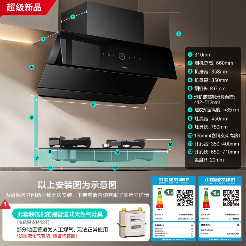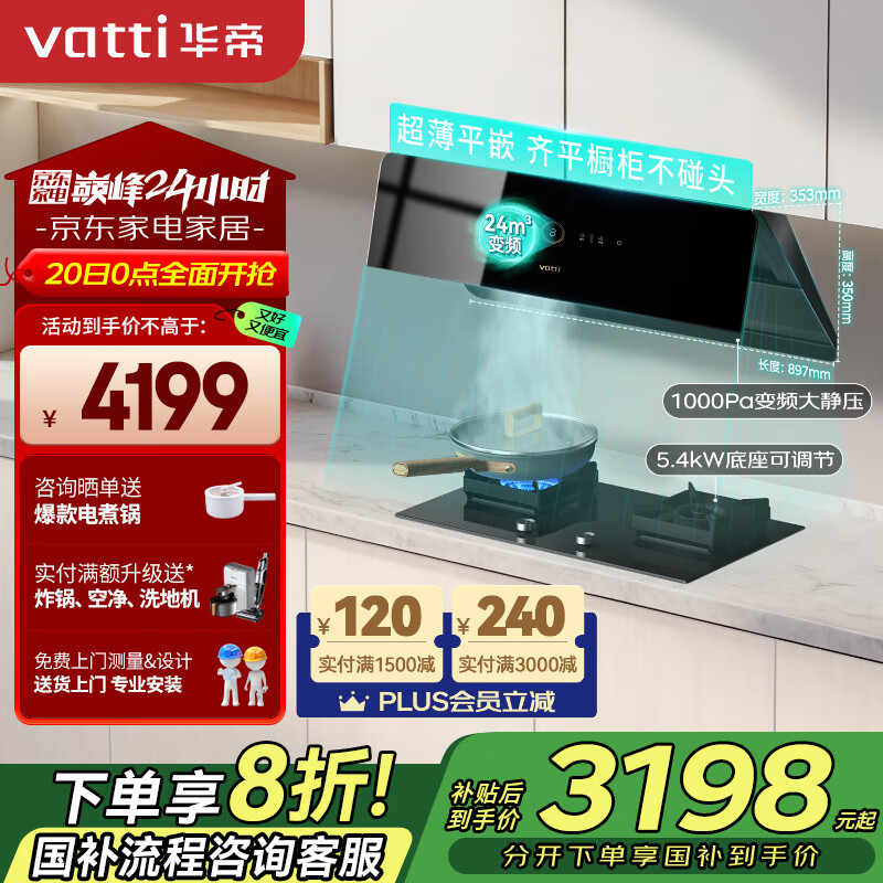 华帝(VATTI)【小旋风】官方脱排抽油烟机家用超薄变频大吸力侧吸24风量一键爆炒烟灶套装一级能效i111A6天然气价格:4199.00元!