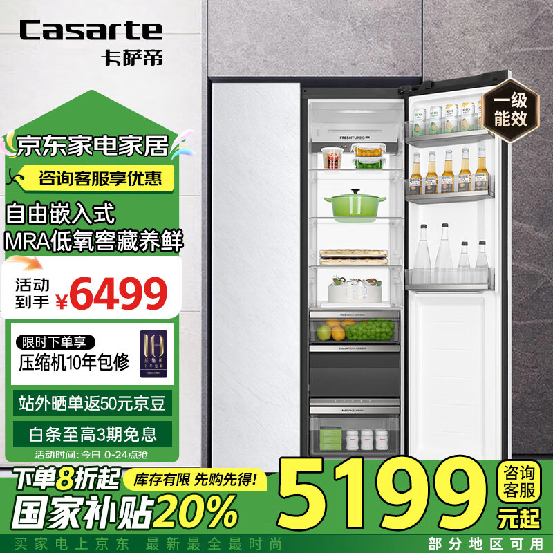 卡萨帝(Casarte)600升原石系列对开门双开门嵌入式超大容量一级能效家用冰箱BCD-600WGCSSM7WYU1价格:6499.00元!