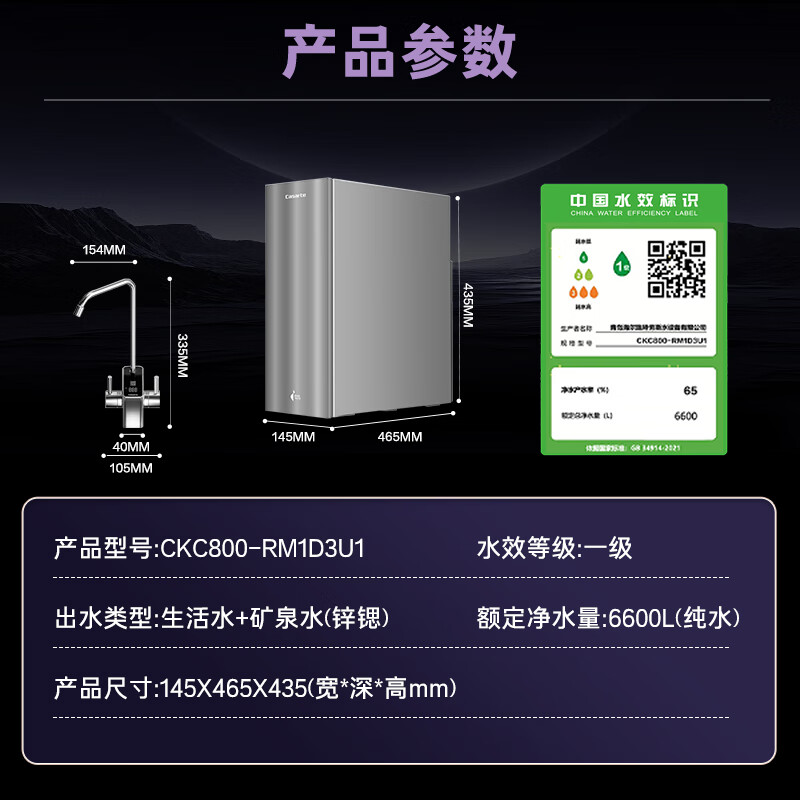 卡萨帝(Casarte)天源净水器鲜焕水家用净水机 锌锶矿泉水800G大通量纯净双出水净饮机 CKC800-RM1D3U1家电补贴价格:6592.50元!