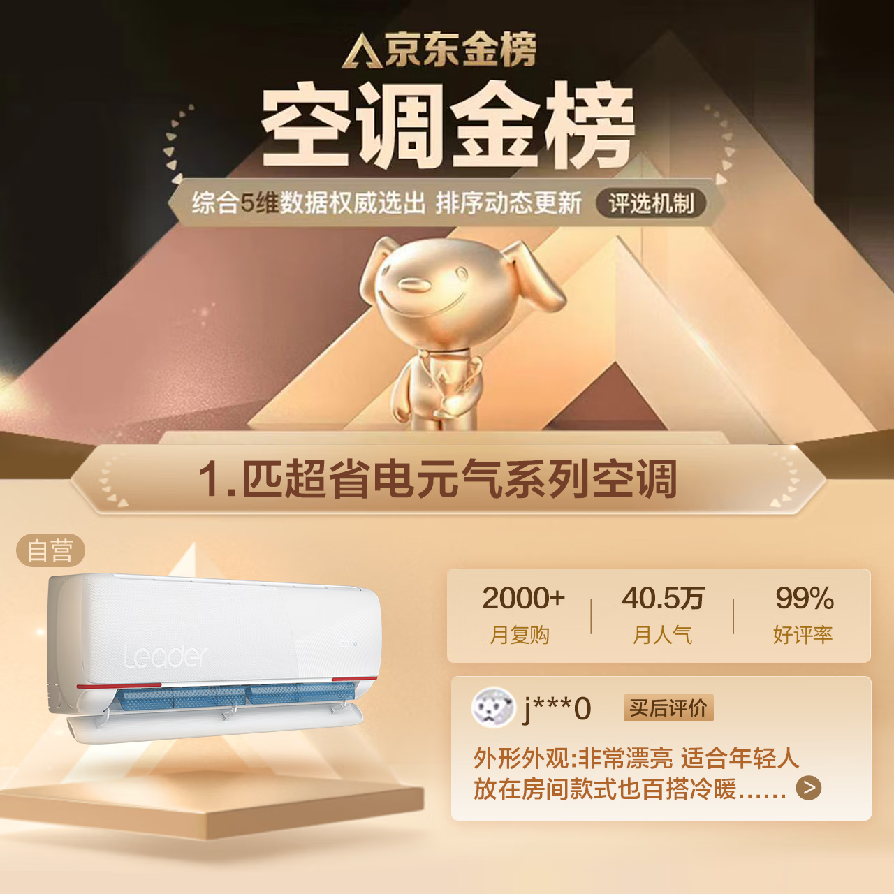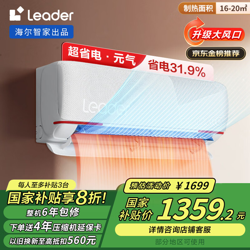 统帅(Leader)空调海尔智家出品 1.5匹新一级超省电变频冷暖空调挂机 元气KFR-35GW/05LKG81TU1以旧换新补贴价格:1699.00元!