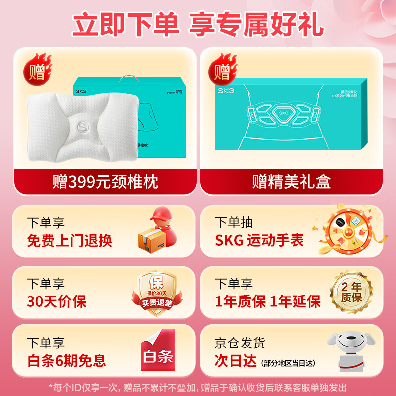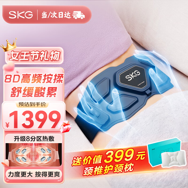 SKG腰部按摩器暖宫腰带腰肌劳损护腰带物理脉冲揉捏热敷按摩仪高端礼品38三八女神节妇女节礼物送母亲 【脉冲敲揉 复合按摩】G7豪华款价格:1599.00元!
