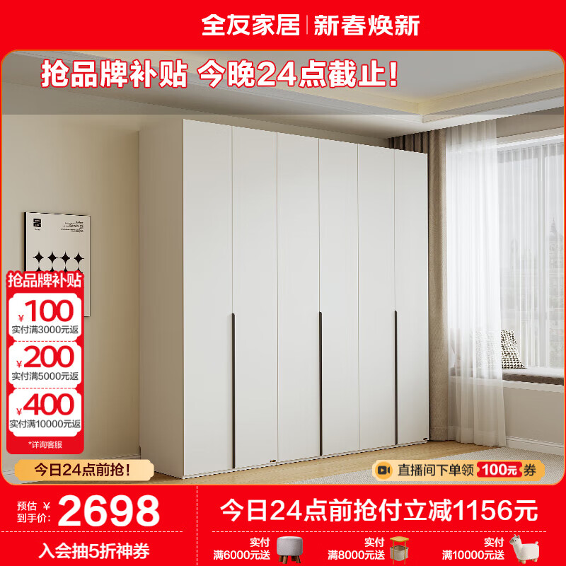 全友家居 现代简约四门衣柜卧室收纳储物组合大柜子开放式边柜600602价格:3854.29元!