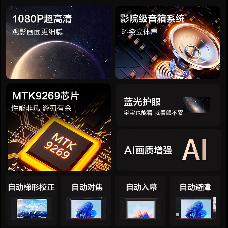 4、外形外观:外形美观大气投影亮度:自动聚焦很实用投影色彩:投屏质量很高,值得推荐非常值得推荐,噪音小,很清晰,关键是白天拉窗帘投屏也很清晰,推荐购买哦!