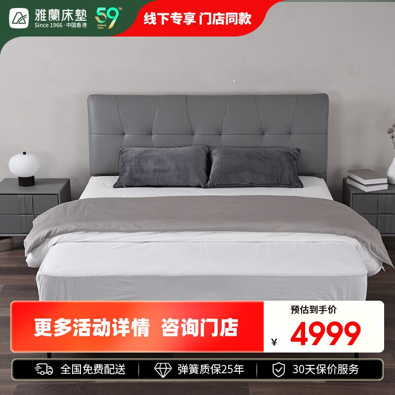 雅兰床架【超体专享】西西里岛皮床 (雅致灰 )1.5*2米 【详询门店】价格:6499.00元!