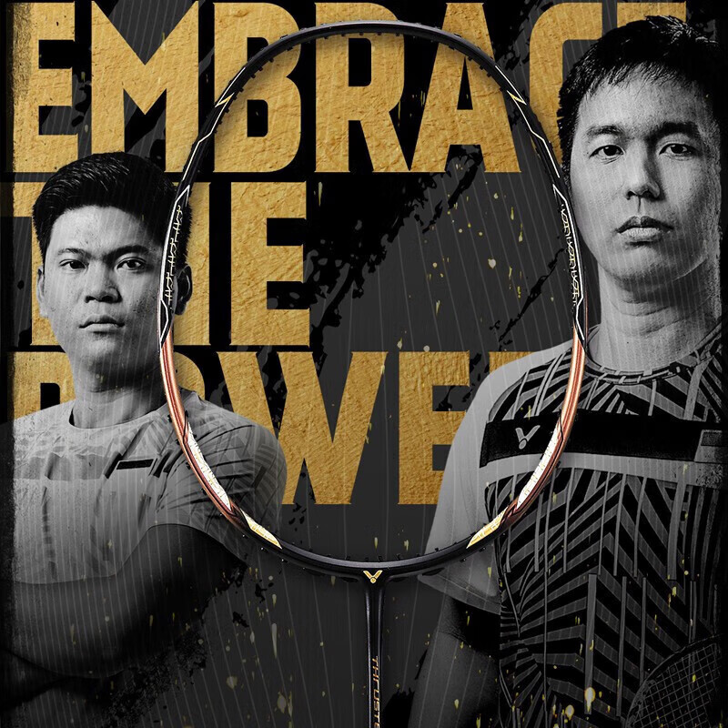 3、威克多(VICTOR)羽毛球拍胜利全碳素铁锤单拍超轻高磅5U穿线24磅,拍身整体强度较高,重心靠拍头侧,拍杆刚性较强,适合进攻,而且预穿线磅数也比较准,做为一款入门级羽拍,性价比较高。