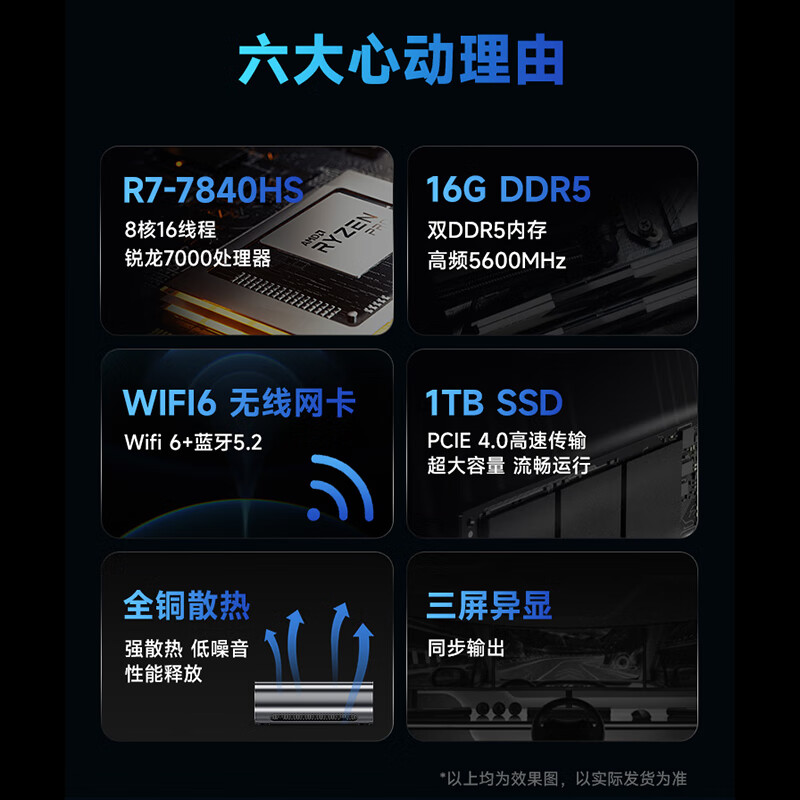AOC 显示器电脑套装电脑台式机整机主机 Mini迷你主机(AMD R7-7840HS 16G 1T Wifi6)23.8英寸价格:3199.00元!