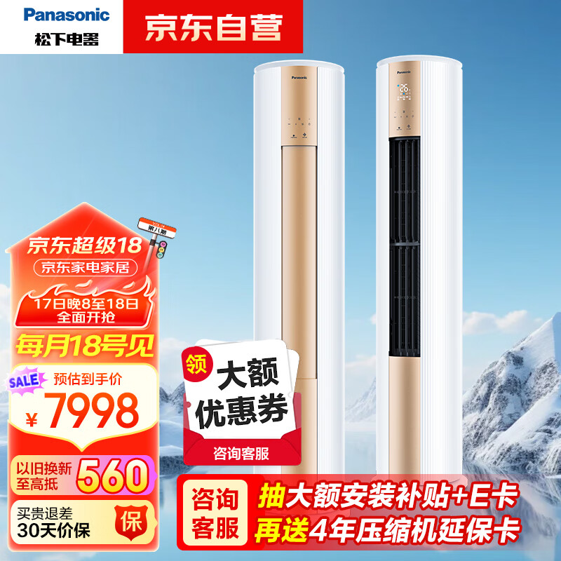 松下空调 净悦星3匹新三级能效 圆柱立式柜机客厅空调变频 纳诺怡除菌洁净 WiFi 以旧换新 ZY72F330N价格:7982.00元!