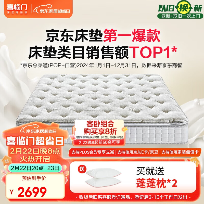 喜临门床垫 2cm高纯乳胶独袋弹簧床垫 3D黄麻床垫 白骑士plus 2x2米价格:2799.00元!