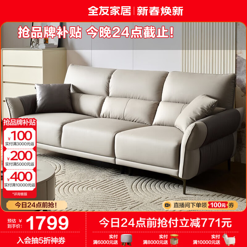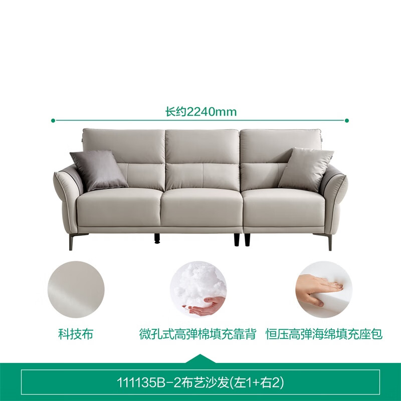 全友家居 家用客厅沙发小户型现代简约实木框架直排科技布沙发111135价格:2570.00元!