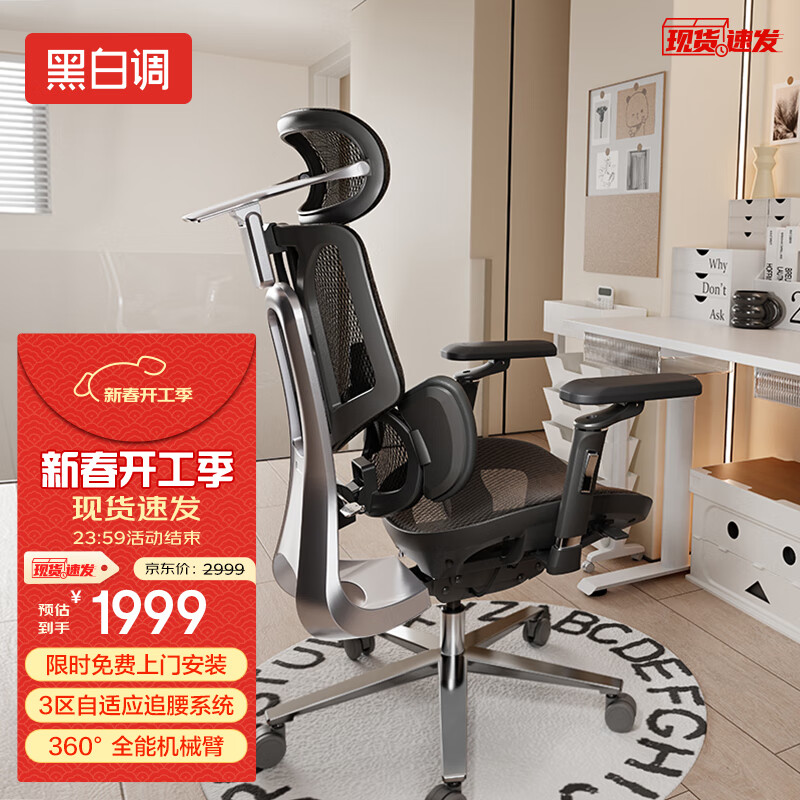 黑白调E3 Pro 4代人体工学椅 电脑椅子办公椅电竞人工力学座椅久坐舒服价格:2299.00元!